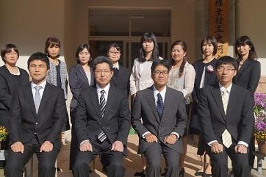写真は、本校職員です。元気がよく明るい先生方です。9名の子どものために一生