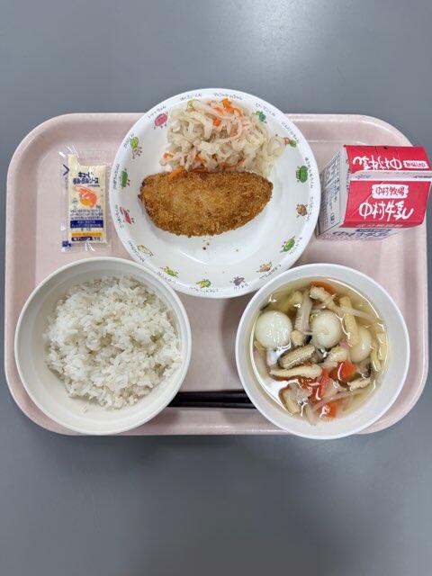 今日のつみれ汁のつみれにはアジが使われていました。イワシかなと思いながら食べましたが、見事外れました。きれいにミンチされていてl小骨等無く、おいしかったです。五目きんぴらは薄切りのレンコンのしゃきしゃき感がとてもよかったです。毎日の給食に感謝です。