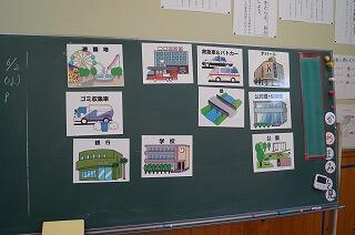 3年生の社会の学習。椎葉小学校のまわりのいろいろな施設を