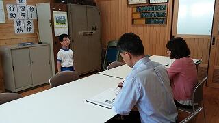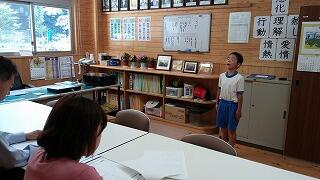 大河内小学校では、様々な場面で自信を持って発表できるよう、子どもたちの表現の場を設定しています。その一つが音読発表会です。月に一度、1か月かけて練習した詩などの暗唱をします。校長室で校長先生や保健の先生の前での発表です。