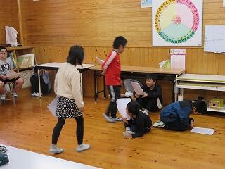 学習発表会の劇の練習をしていました。13人全員で演じます。