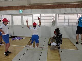 記録がずいぶん伸びた子もいます。日頃の授業の成果ですね。子ども達に見守られながら先生達もチャレンジ!