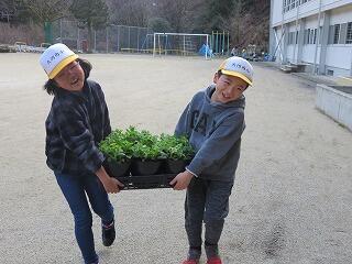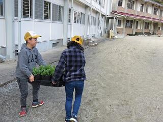 たくさん植えました。3月の卒業式で会場をあざやかに彩ってくれることでしょう。