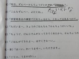 今回は、方言を使った劇の台本の手直しをしていました。いつにもまして真剣にお勉強しています。