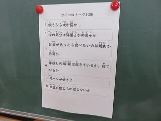 スピーチするお題がサイコロの目で決まる、という趣向です。ドキドキ。