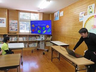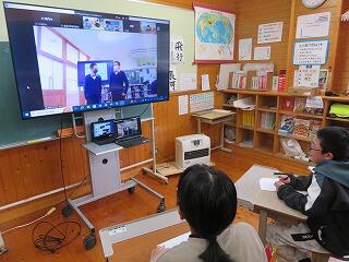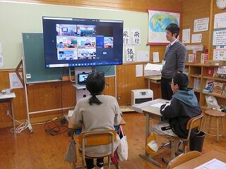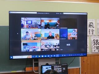 5・6年生が、インターネットを通じて、ほかの学校と交流学習をしていました。