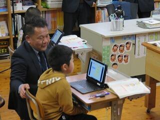 写真には写っていませんが、教室のこちら側では、鋭い視線で校長先生も見ています。