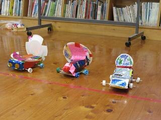 教室の後ろには、紙粘土で作った作品がありました。遠近感があっておもしろい。