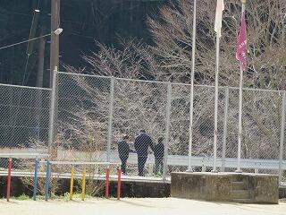 他の学校で多いのは、「不審者」対策等での閉門でしょうが、我が大河内小では不審者ならぬ『不審「鹿さん」』対策で通用門などを網で閉じます。これは食害を防ぐためです。ちなみに鹿さんたちには運転中、ばったり出くわすことも多々あります。運悪くぶつかったりすると車のほうがへこんでしまいます(゚Д゚)。先生方にはそういった意味でも安全運転の遵守をお願いしているところです。