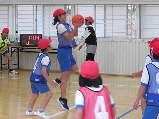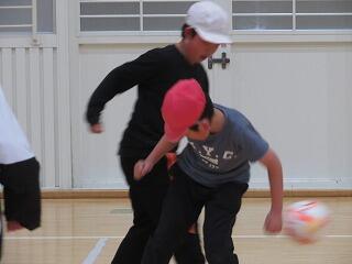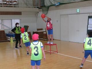 ゴールには「ゴールマン」がいて、ボールをキャッチしてくれるので、シュートの成功率が高まります。2年生のゴールマンがナイスキャッチ!