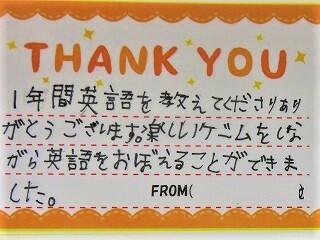 1年間、楽しい英語の授業をありがとうございました。来年も英語の時間が楽しみです!