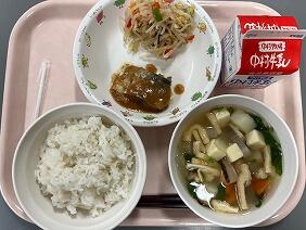 厚揚げは小さくて柔らかく、1年生にも食べやすい大きさでした。キャベツがシャキシャキで、中華風のタレとからんでおいしかったです。ワンタンスープはごま油の香りが食欲をそそりました。つるっとしたワンタンがたっぷり入っていて食べごたえがありました。