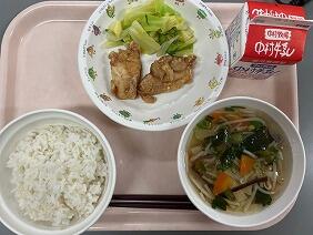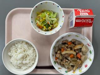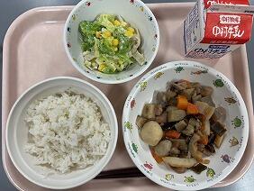 キャベツの甘酢和えは、シャキっとしていて甘酢が風味が食欲をそそります。鶏肉のうま煮には味が染みていて、里芋のとろみもついていたのでごはんによく合いました。6年生は大河内小食べる、最後から2番目の給食です。明日の給食も楽しみです。