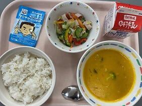 今日は大雨で、気分が少し下がり気味でしたが、美味しい給食のおかげで、気持ちが晴れやかになりました。