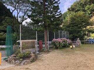 大河内小では、校門横のアジサイが盛りを迎えています。