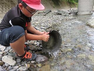 バケツを傾けただけで飛び出す元気な稚魚がいたり、放流したのにしばらくの間、ずっと目の前で泳ぎ続ける稚魚たちがいたり、いつもの川では見られない光景に、子どもたちは興味しんしんでした。