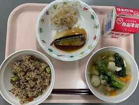 ひじきごはんは味がしっかりしていて、ひじきの風味も良くパクパク食べられました。さんま甘露煮は柔らかく、箸で簡単に切れました。濃いめのタレがごはんに合います。つみれ汁は、野菜とつみれがたっぷり入っていて食べ応えがありました。指導しなくても一人〇こずつ~と言いながらつみれを数えてついでいて、子どもたちの成長を感じました。