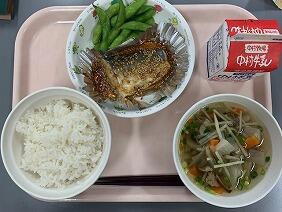 白身魚のごまみそ焼きは、ごまの風味がよく、みそがごはんによく合いました。枝豆は食べるのが楽しく、子どもたちも一粒ずつ楽しんで食べていました。さわにわんはたけのこやごぼうなど様々な具がたっぷり入っていて、豚の脂も出ていたので食べ応えがありました。