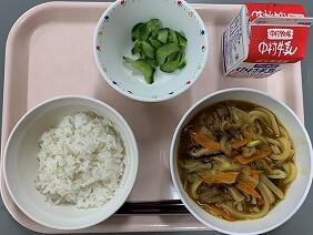 今日はポークカレーでした。ひきわり大豆と枝豆がたっぷり入っていて、食べ応えがありました。今日のような暑い日でも、カレーなら食欲がわくようで、子どもたちもあという間に食べ終えてしまっていました。海藻サラダはさっぱりした味付けで、パクパク食べられました。