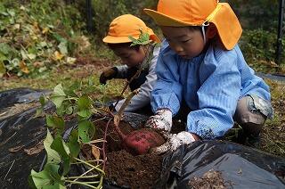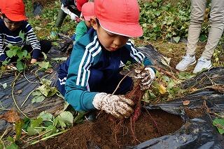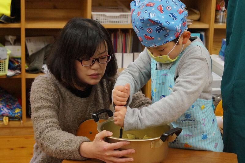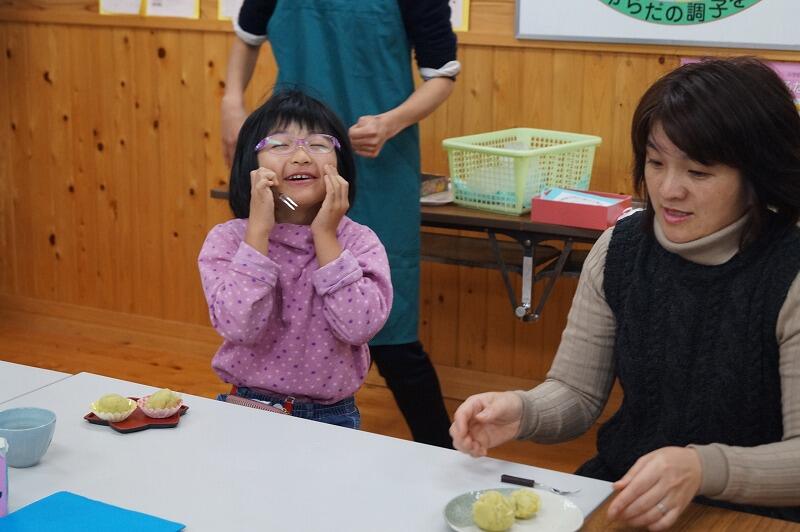 茶巾しぼりを作ることも楽しみなようでしたが、自分たちで育てたお芋の味も楽しみにしていたようです。できあがった茶巾しぼりは保護者とお茶会をしていただきました。