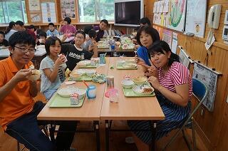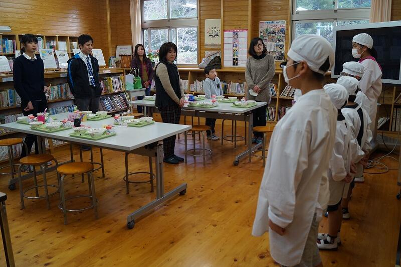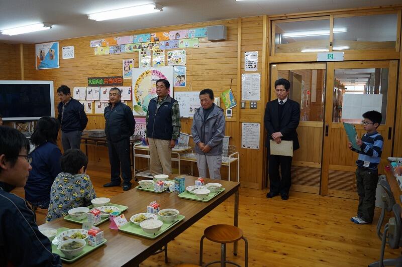 今日は、生産者の方々においでいただき、交流給食を行いました。