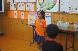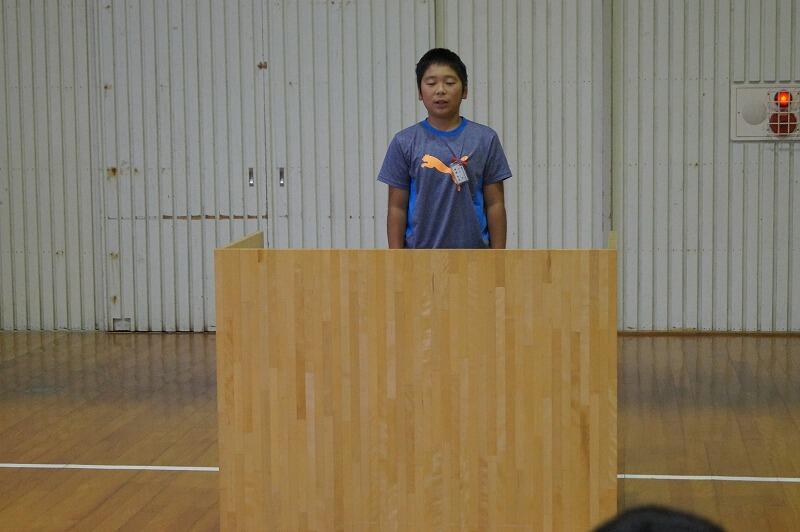 2学期反省を1年生のKくん、5年生のTくんが代表で発表しました。