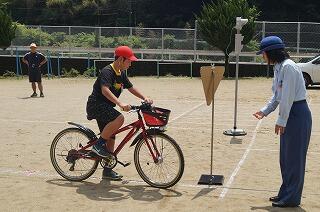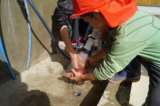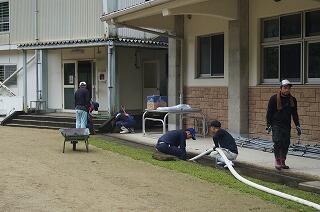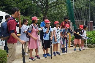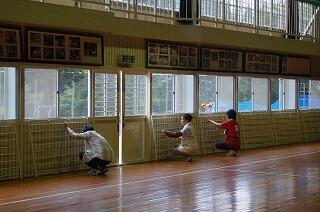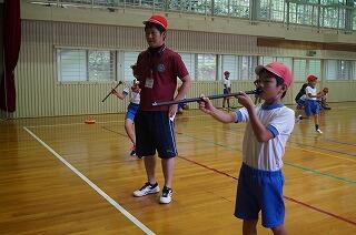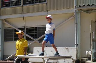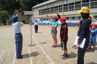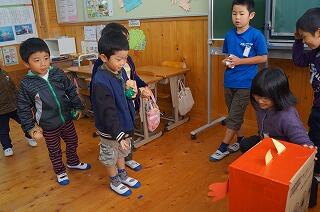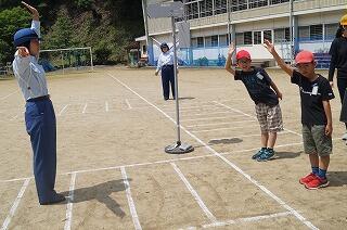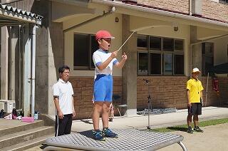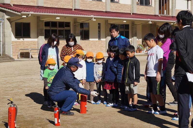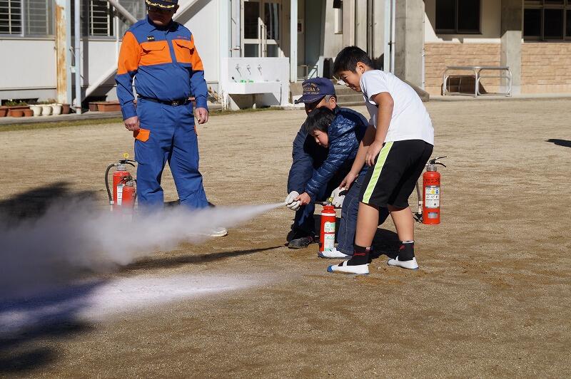消火器の使い方が分かっているか、代表の先生と児童で実践してみました。