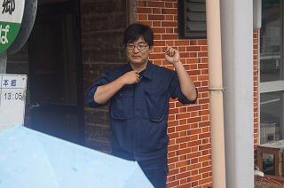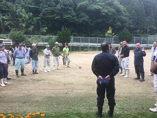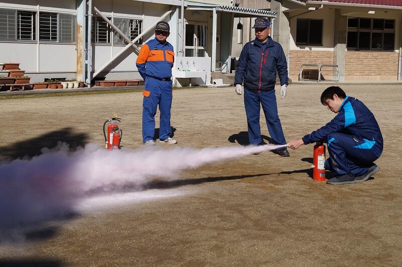 避難した後は消防団員から火災防止の心がけと消火器の使い方について指導していただきました。