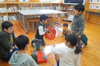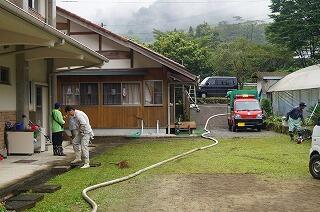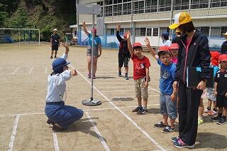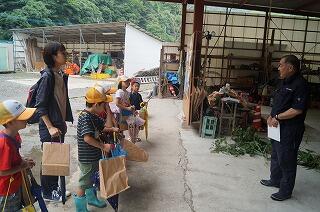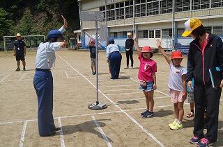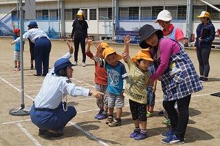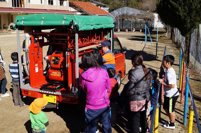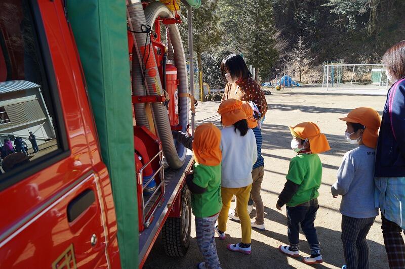 今回は、地域の消防団に協力をいただき、保育所生も一緒に訓練をしました。