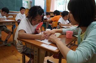 ぬり絵が始まると、全員が集中して黙々と作業をしていました。できあがりをほめていただき、児童も喜んでいました。