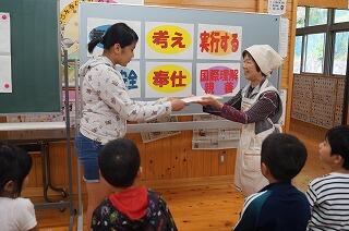 子どもたちは日ごろの感謝の気持ちを作文にして、感謝状として贈りました。