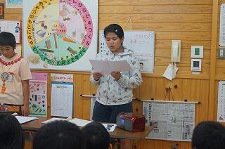 6年生の発表です。まず、「大好きな椎葉村を盛り上げるため」に