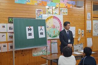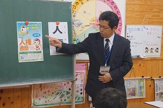 人権とはなにか?日頃の生活で、お互いの人権が守られているか?ということなどを、子どもの作文を紹介しながら話されました。
