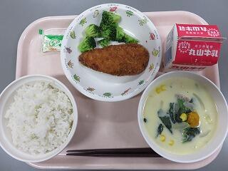 鶏肉のちゃんちゃん焼きは、みその風味がよくコクがあってごはんが進む味付けです。野菜もよくいためられていて柔らかくておいしかったです。ごぼう団子は食べ応えがあり、醤油味の汁と相性抜群でした。ミルメークは久しぶりで、みんな楽しみにしていました。こぼさないように慎重に混ぜ、コーヒー味にして楽しみます。「甘くておいしい~」という声がどのクラスでも聞こえてました。