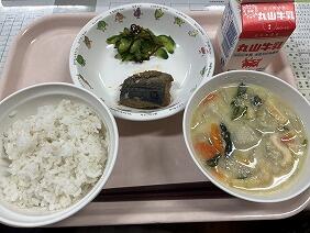今日は今年度最後の給食です。塩昆布和えはカラーピーマンが鮮やかで見た目にも楽しく、ちょうどよい塩気でおいしかったです。さんまみぞれ煮は柔らかく、大根おろしの食感も残っていました。吉野汁にはじゃがいもが入っていて少しとろみがついています。優しい味付けで、体が温まりました。来年度も給食が楽しみです。
