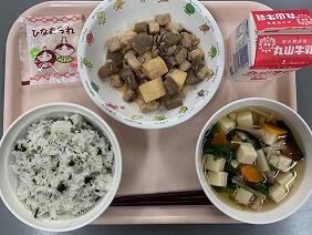 麦ごはん 小松菜のごま和え 高野豆腐の煮物 ミルメーク