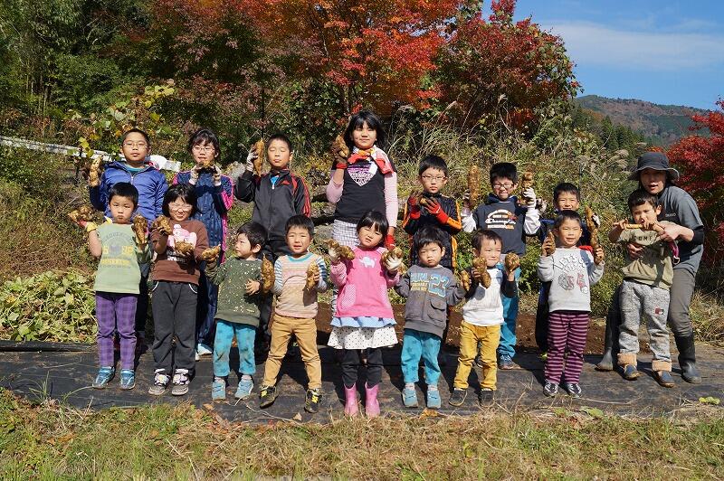 13日(月)に保育園と合同で学校園の芋掘りをしました。