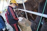 次に向かったのは、尾前牧場。肉牛の飼育をされています。説明を聞いた後、餌やりの体験をしました。触ってみたいけどちょっとこわい。そんなことも時間の問題でした。