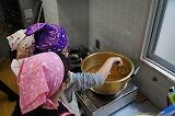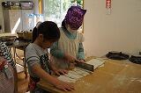 そば粉を、少しずつ水でしめらせながら混ぜていきます。水の量をちょうどよくしないとべとべとになったりぽろぽろになったりして、うまくつながりません。講師の先生はとてもわかりやすく教えてくださいました。おかげで、すばらしいそばができて大満足!