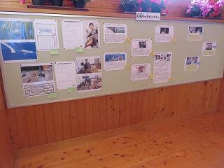 階段掲示板に、冬休みの宿題が貼ってありました。冬休みに取り組んだことを紹介したレポートです。