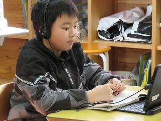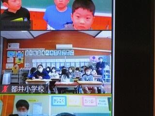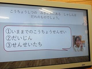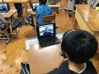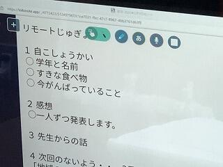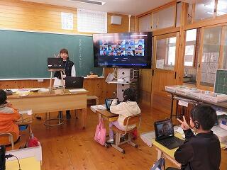 授業をしているのは、画面の向こうの松尾小学校の先生です。