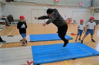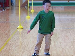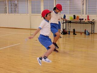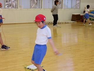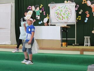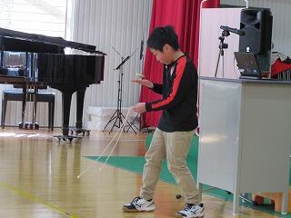 1・2年生の発表。なわとびやけん玉、コマ回しの特技も披露しました。