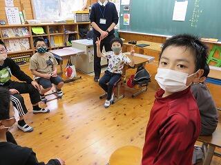 1・2年生には保健室の先生。声色を変えながらの楽しいお話に子どもたちが乗ってきます。