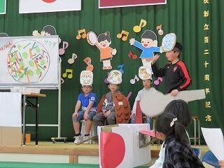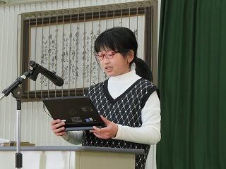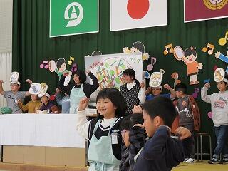 5・6年の発表。「春はあけぼの」の暗唱や家庭科でつくった作品の紹介など、さすが高学年らしい難しい内容の発表でした。