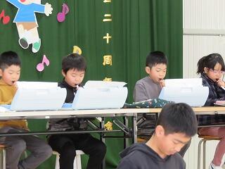 3・4年生の発表。振りを付けて、表情豊かに歌いました。