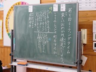 全校の子どもたちによる話合い「ミーティングタイム」がありました。今回の議題は「楽しいおわかれ遠足にしよう」。