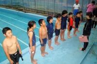 体育主任の甲斐先生から、プールを使うときのきまりについてのお話があった後、たっぷりと準備運動をして、プールに入りました。1~6年生でプールの中を走ったり、じゃんけん列車をしたりして水に慣れました。