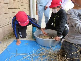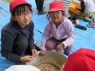 それを手作業で一粒ずつ取り分けていきます。この作業に、子どもたちだけでなく、いつの間にか校長先生も教頭先生も夢中です。