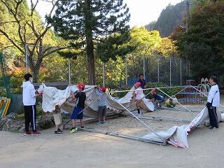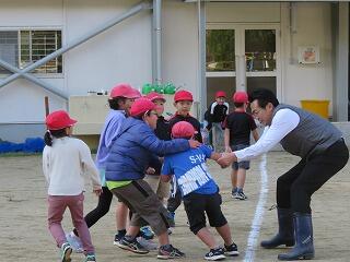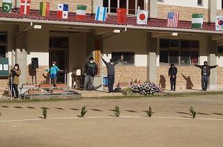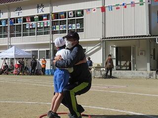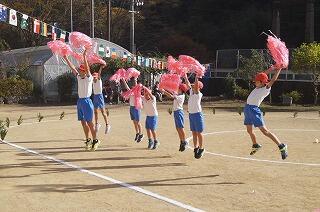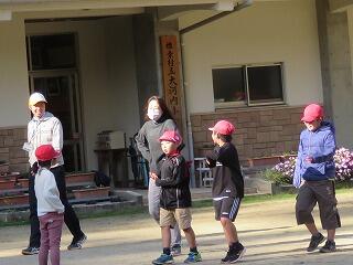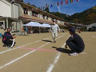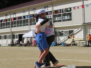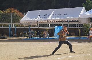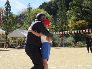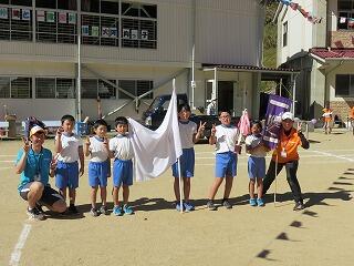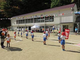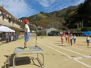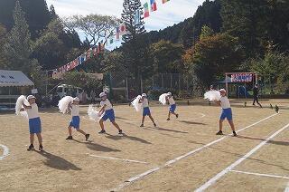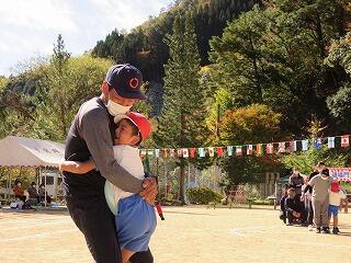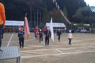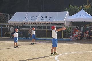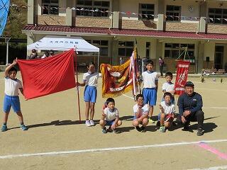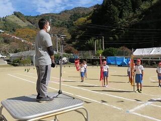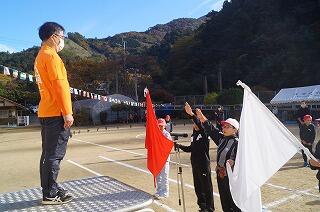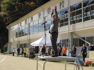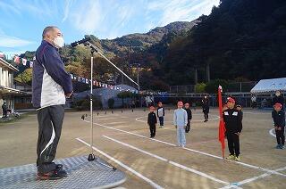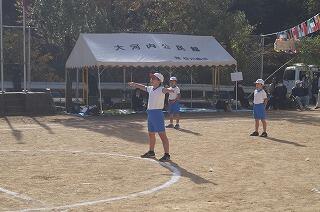 PTA会長さんのお話の後に、教育長のご発声で万歳三唱をしました。台風14号の被害で異例の11月開催となった運動会でしたが、日々、力強く復旧していく大河内地区に響き渡るバンザイでした。