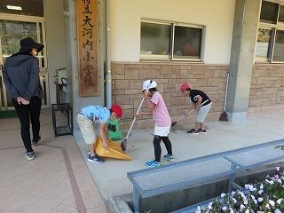 大河内小学校では、1年生から6年生まで、全員で協力して行います。
